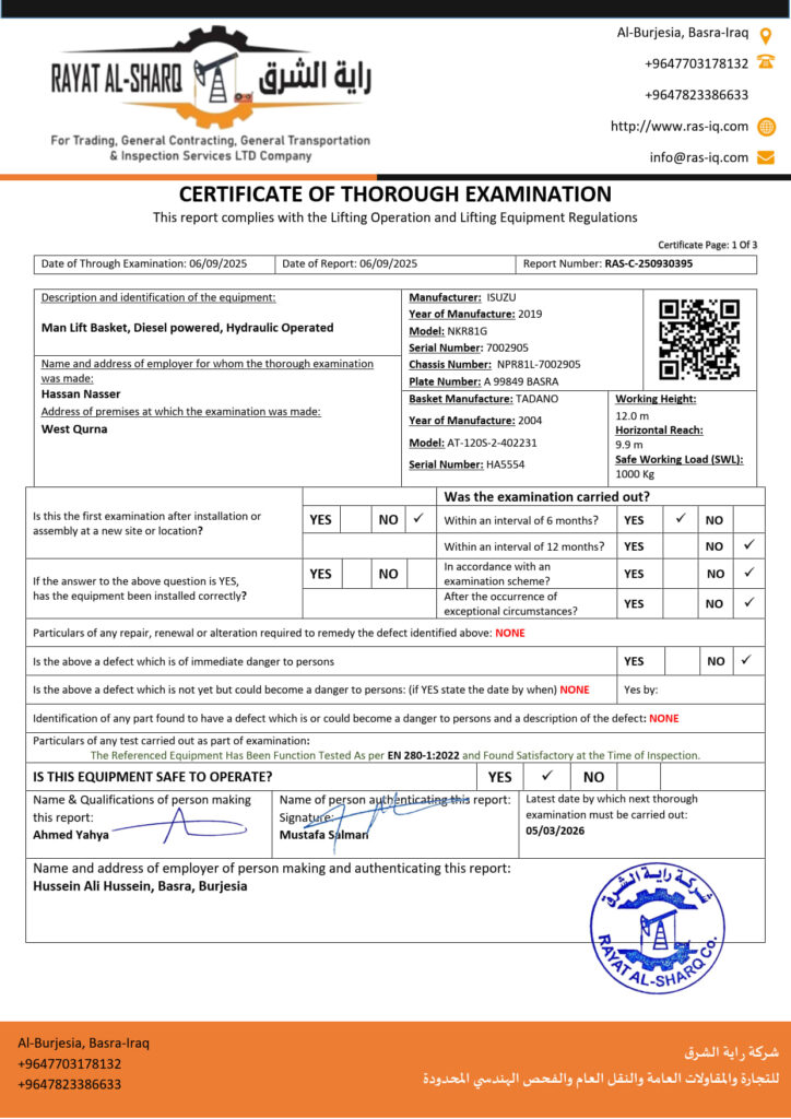 LIFTING INSPECTION