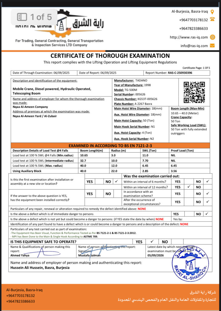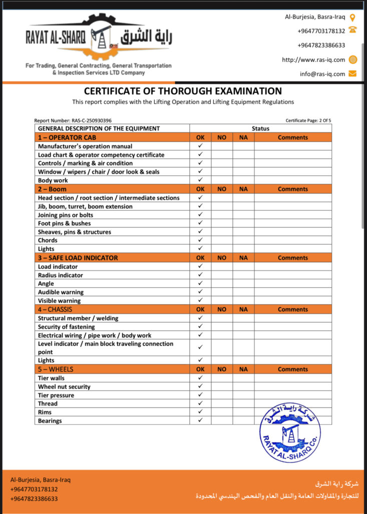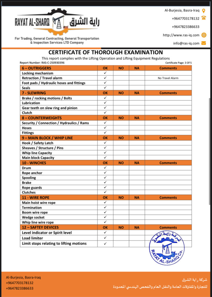 LIFTING INSPECTION