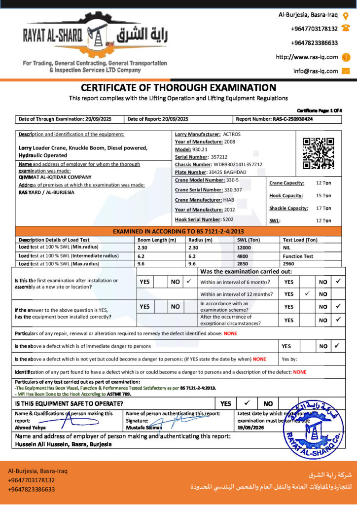 LIFTING INSPECTION
