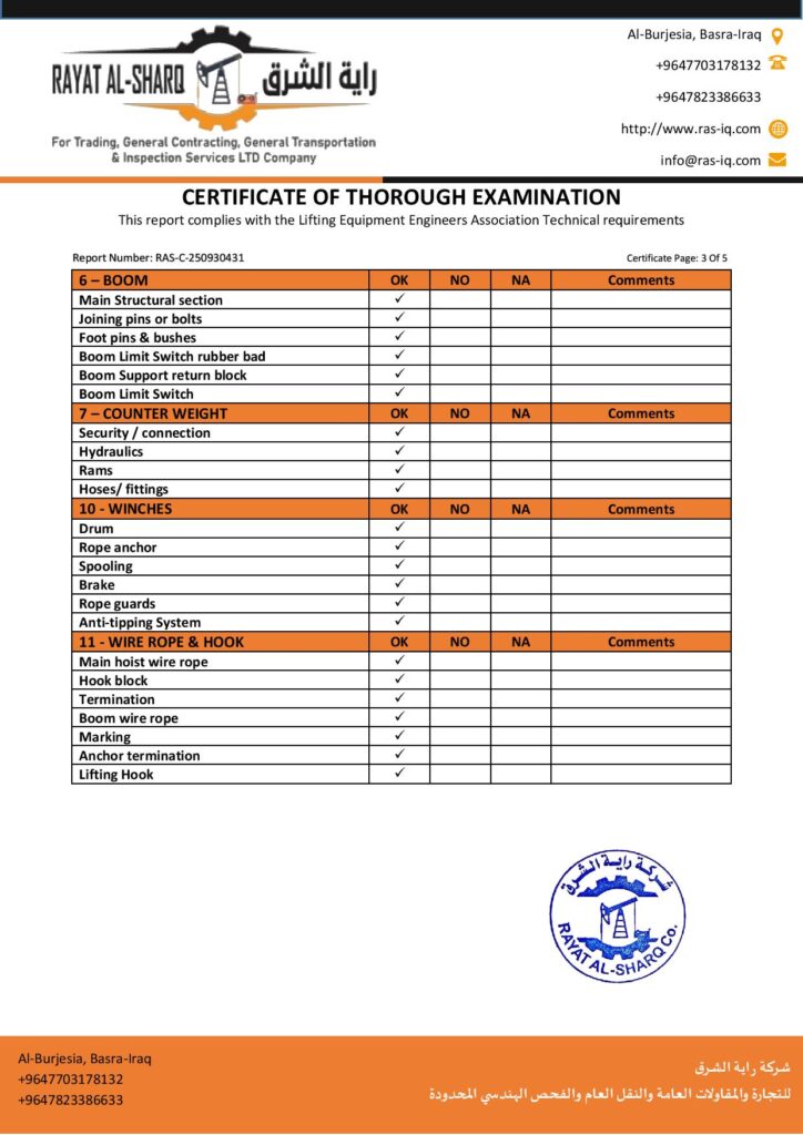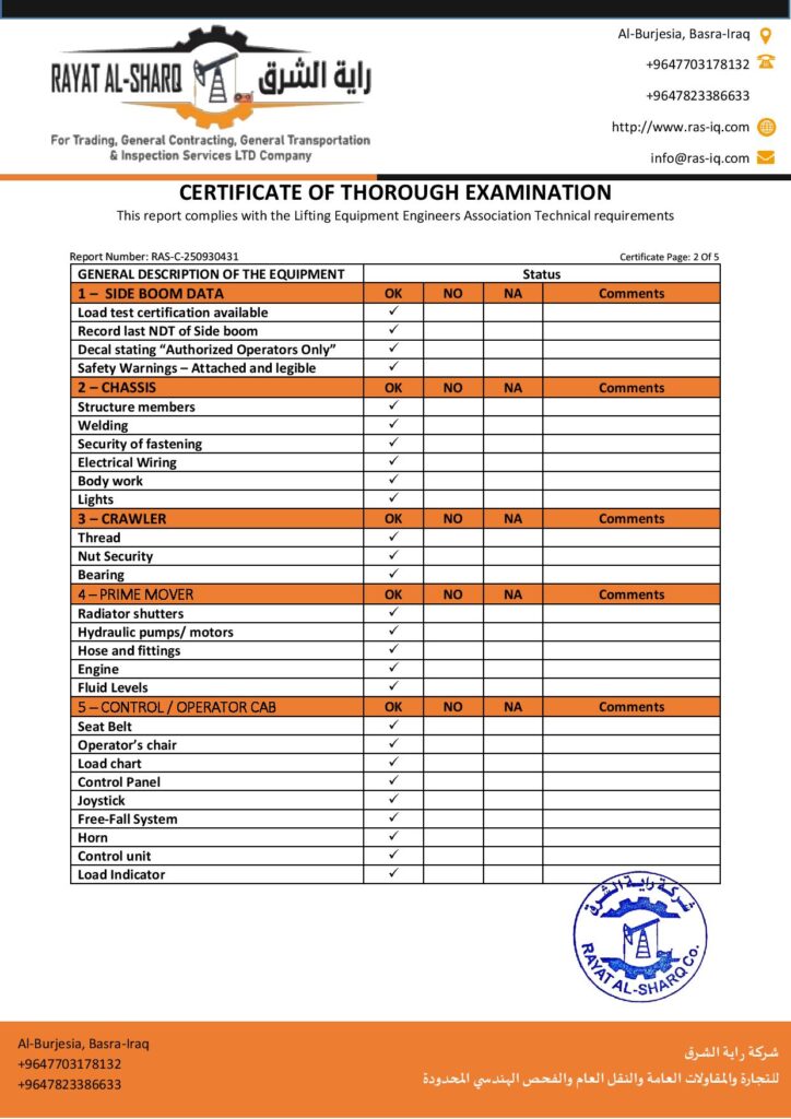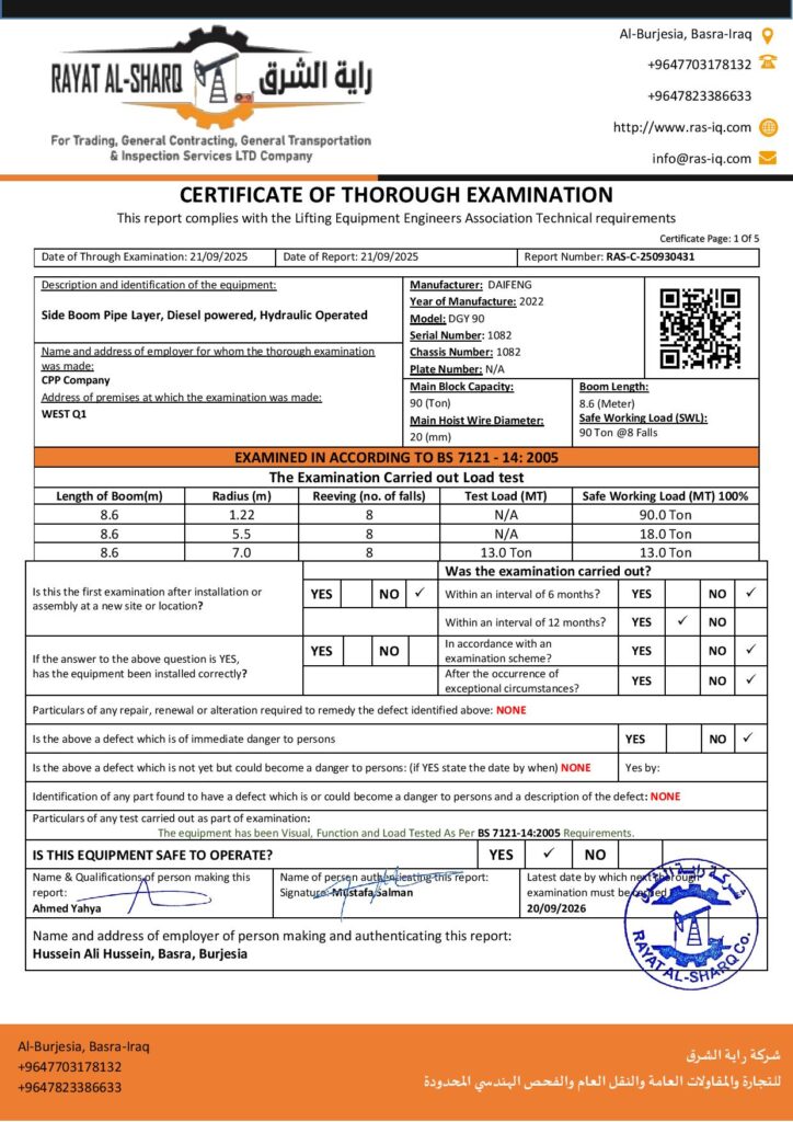 LIFTING INSPECTION