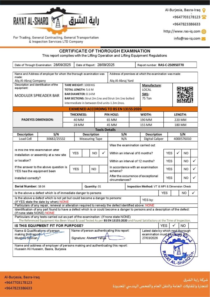 LIFTING INSPECTION