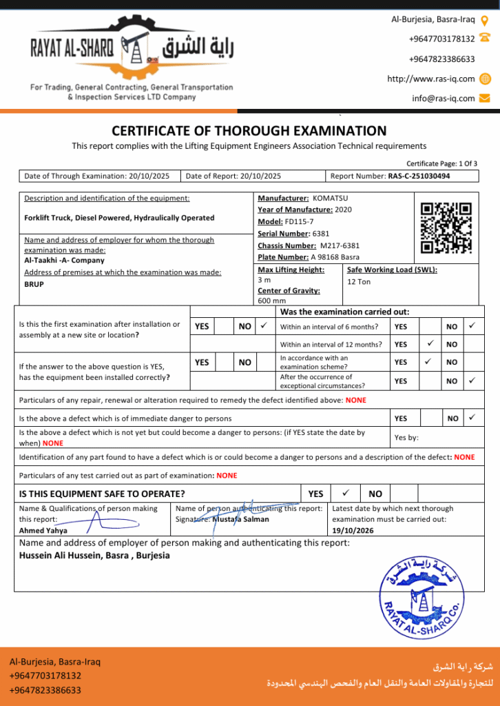 LIFTING INSPECTION