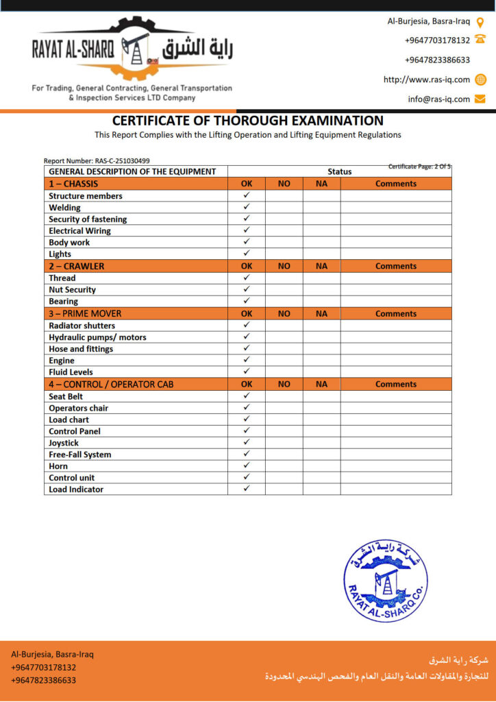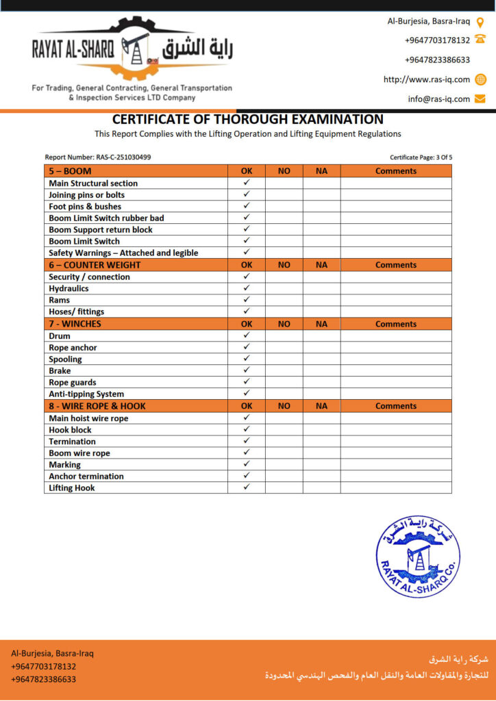 LIFTING INSPECTION
