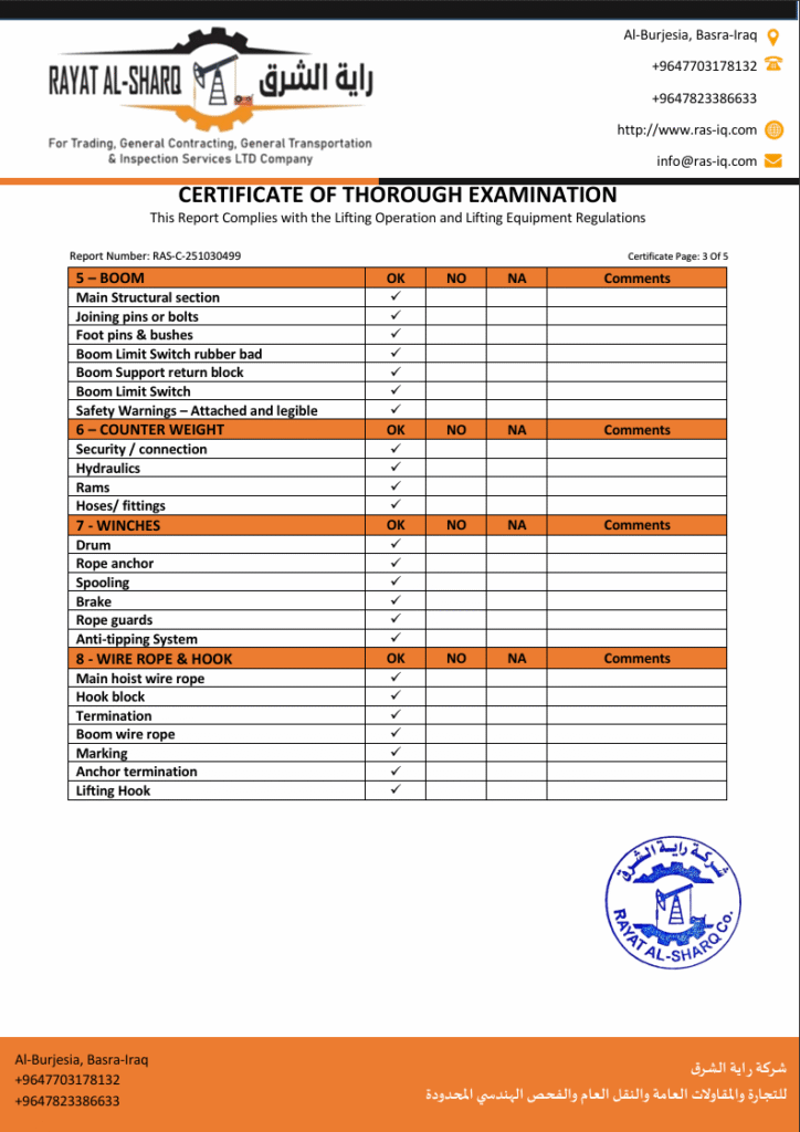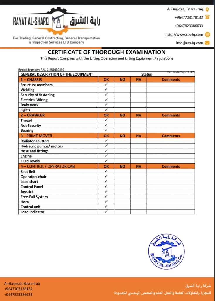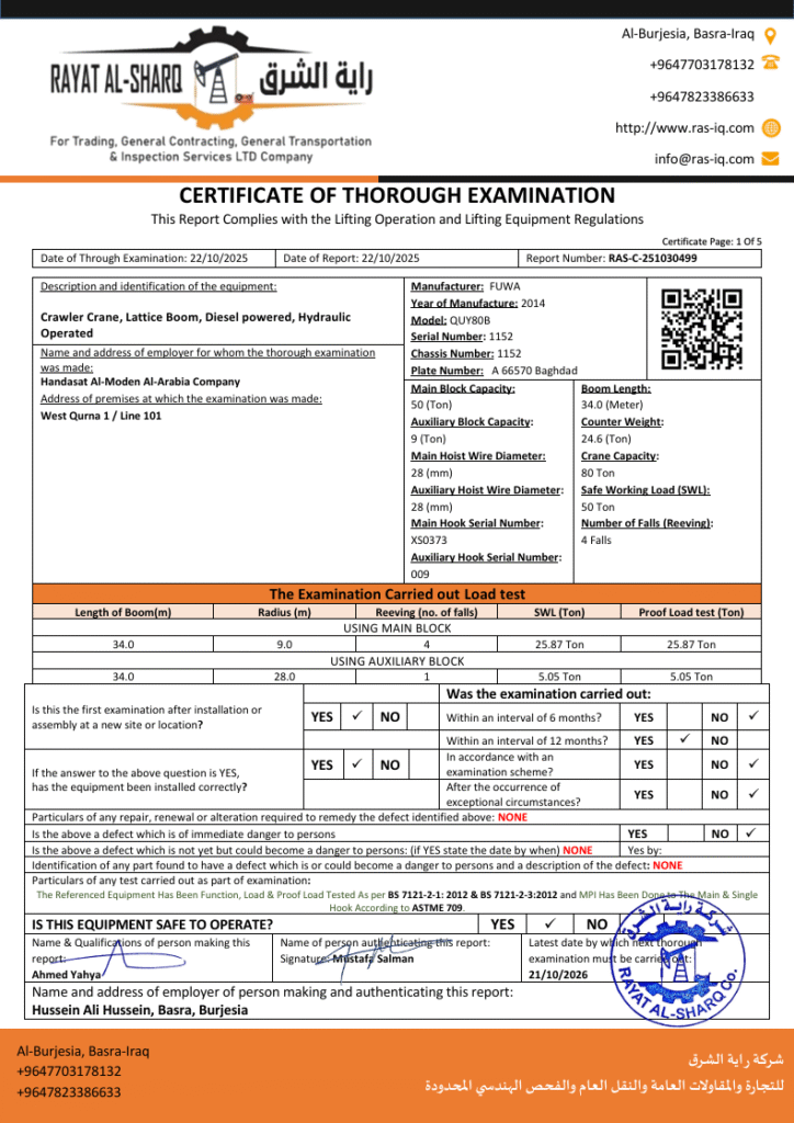 LIFTING INSPECTION
