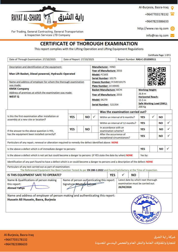 LIFTING INSPECTION