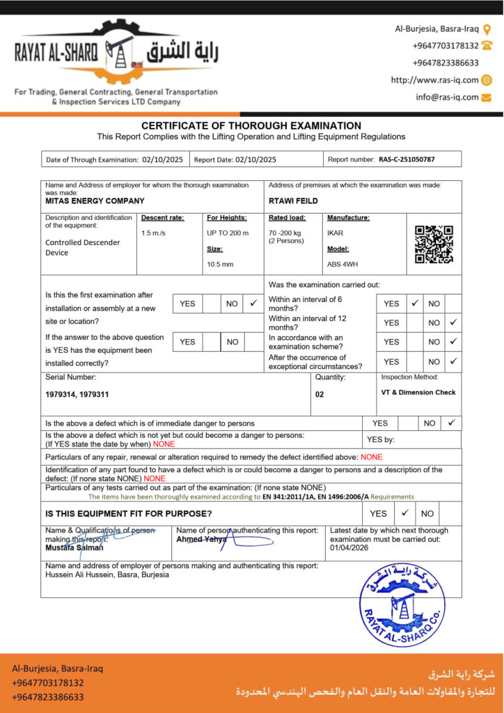 LIFTING INSPECTION