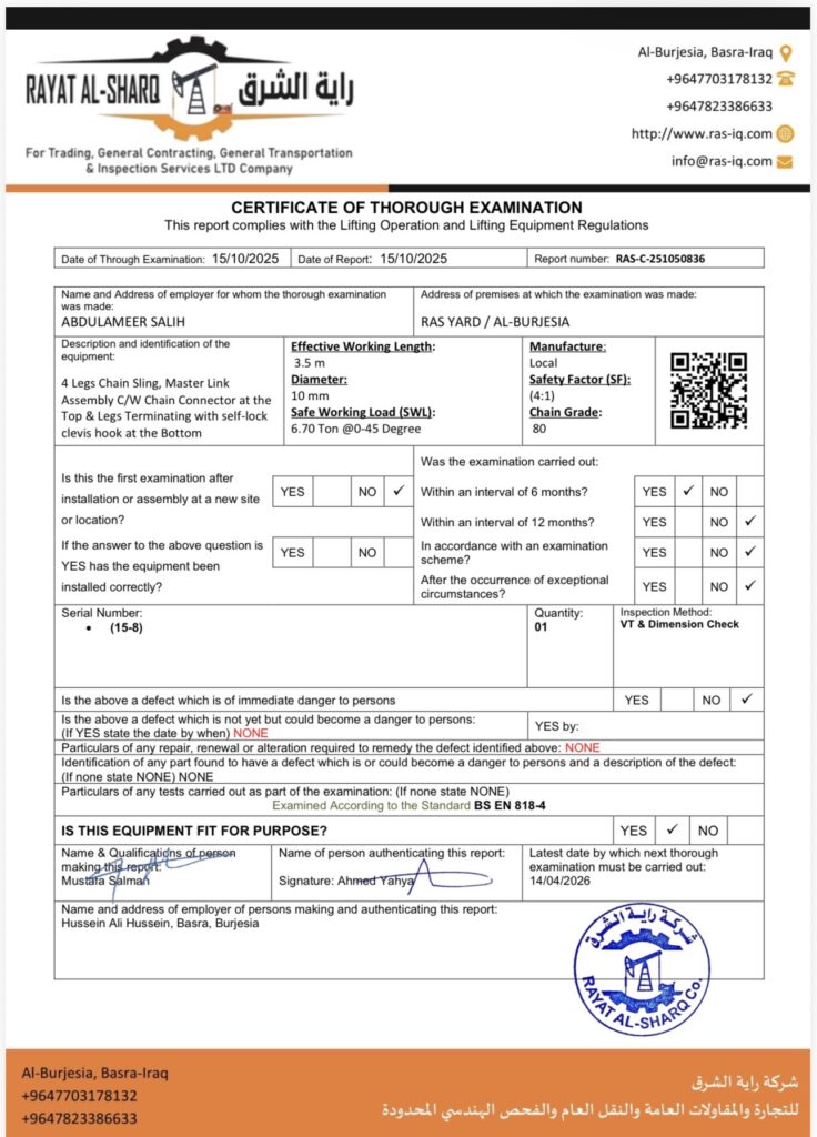LIFTING INSPECTION