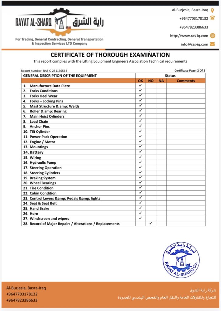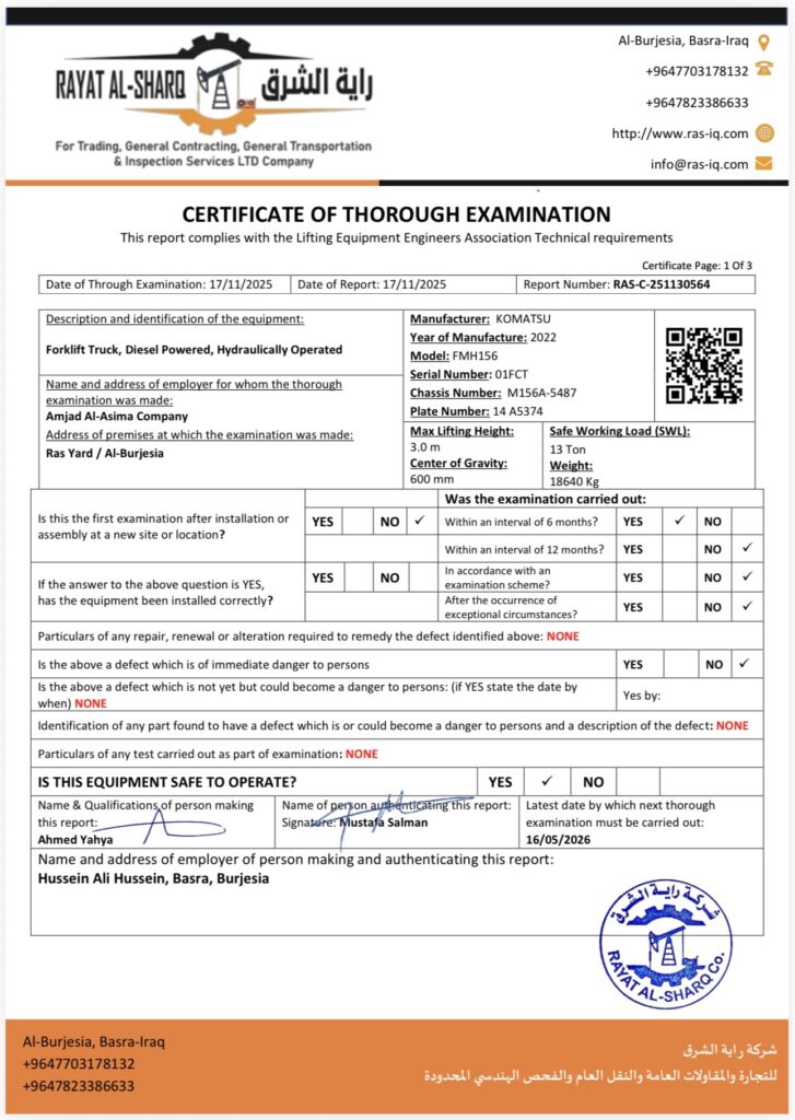 LIFTING INSPECTION
