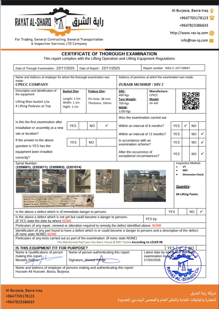 LIFTING INSPECTION