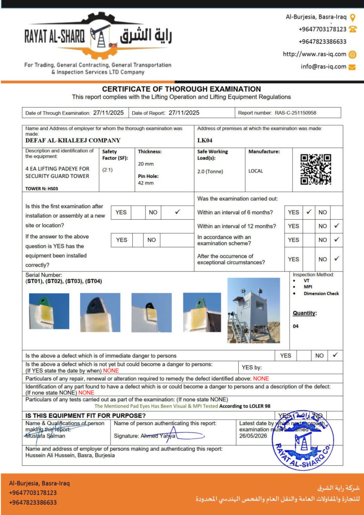 LIFTING INSPECTION