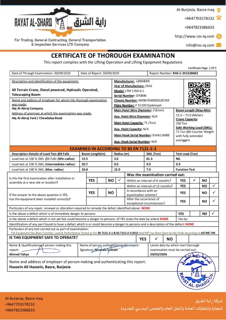 LIFTING INSPECTION