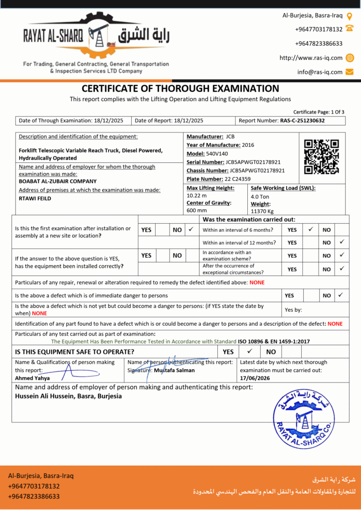 LIFTING INSPECTION