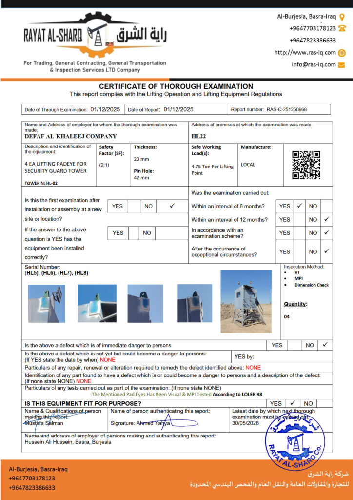LIFTING INSPECTION