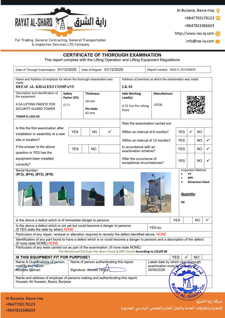 LIFTING INSPECTION