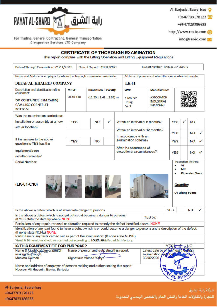 LIFTING INSPECTION