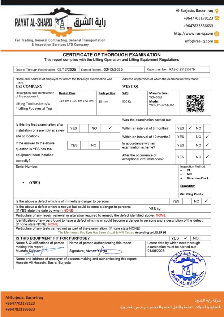 LIFTING INSPECTION
