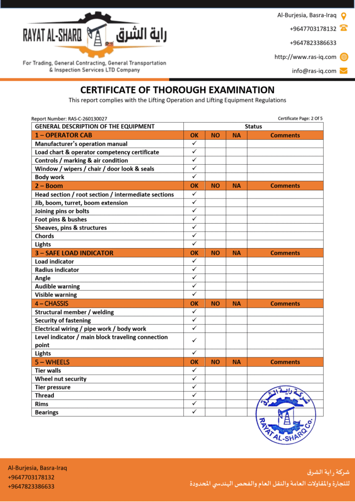 LIFTING INSPECTION
