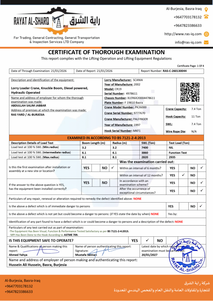 LIFTING INSPECTION