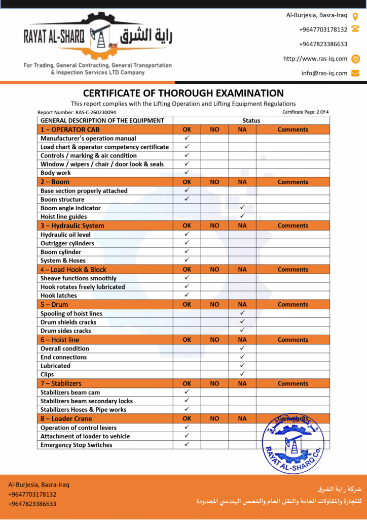 LIFTING INSPECTION