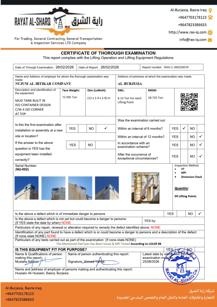LIFTING INSPECTION