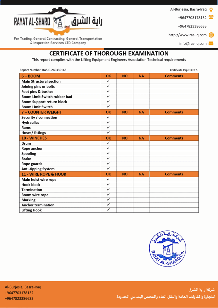 LIFTING INSPECTION