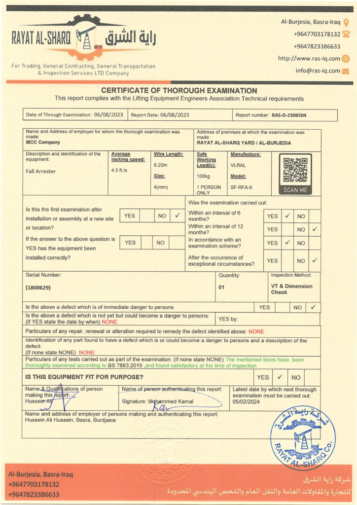 LIFTING INSPECTION