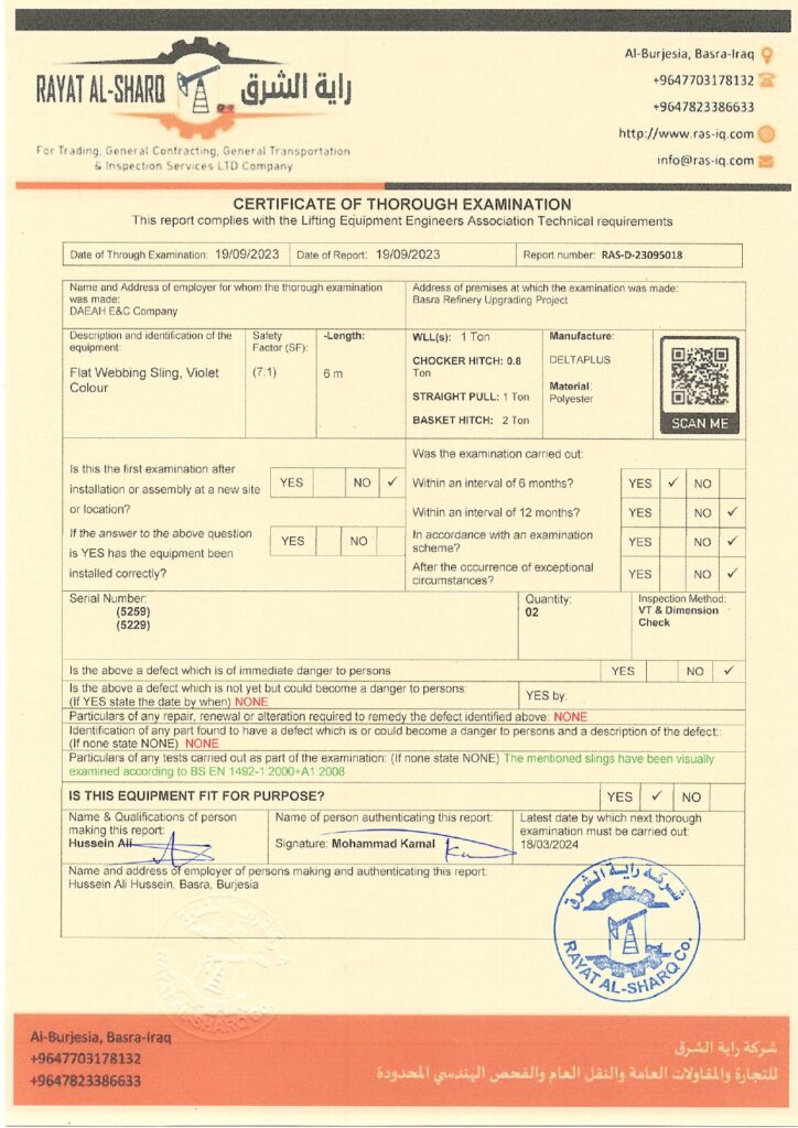 LIFTING INSPECTION