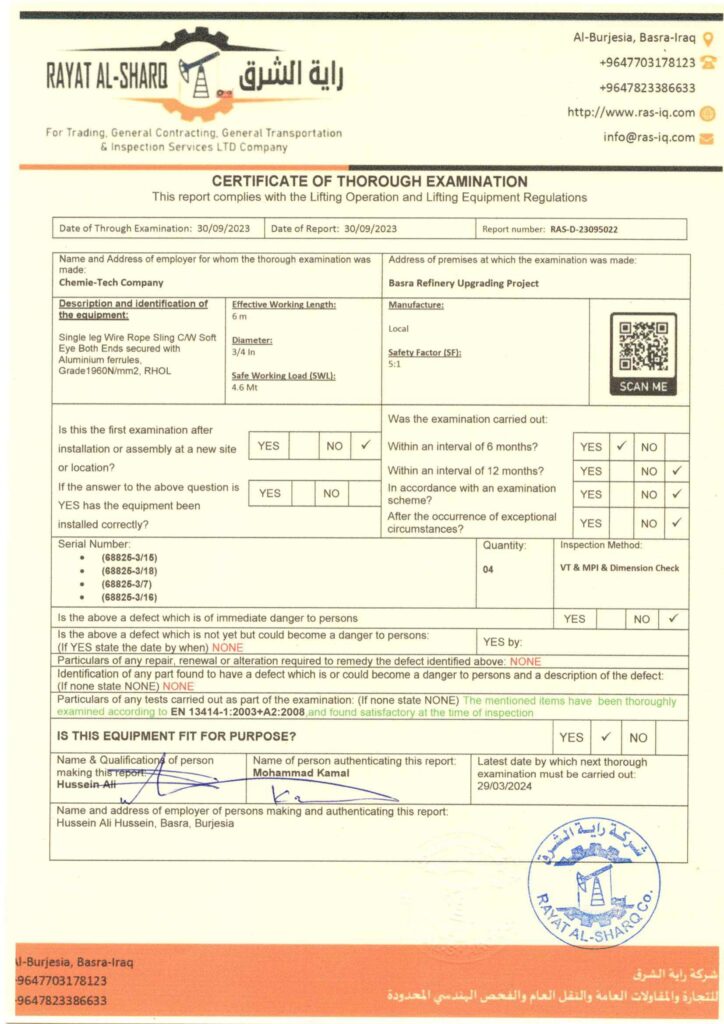 LIFTING INSPECTION