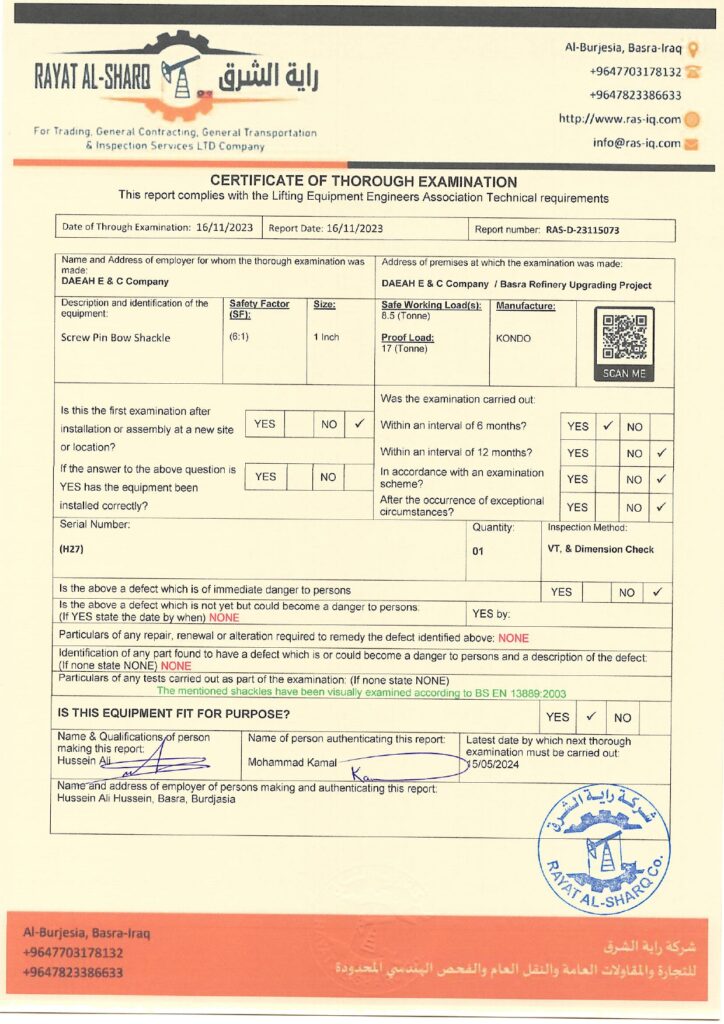 LIFTING INSPECTION