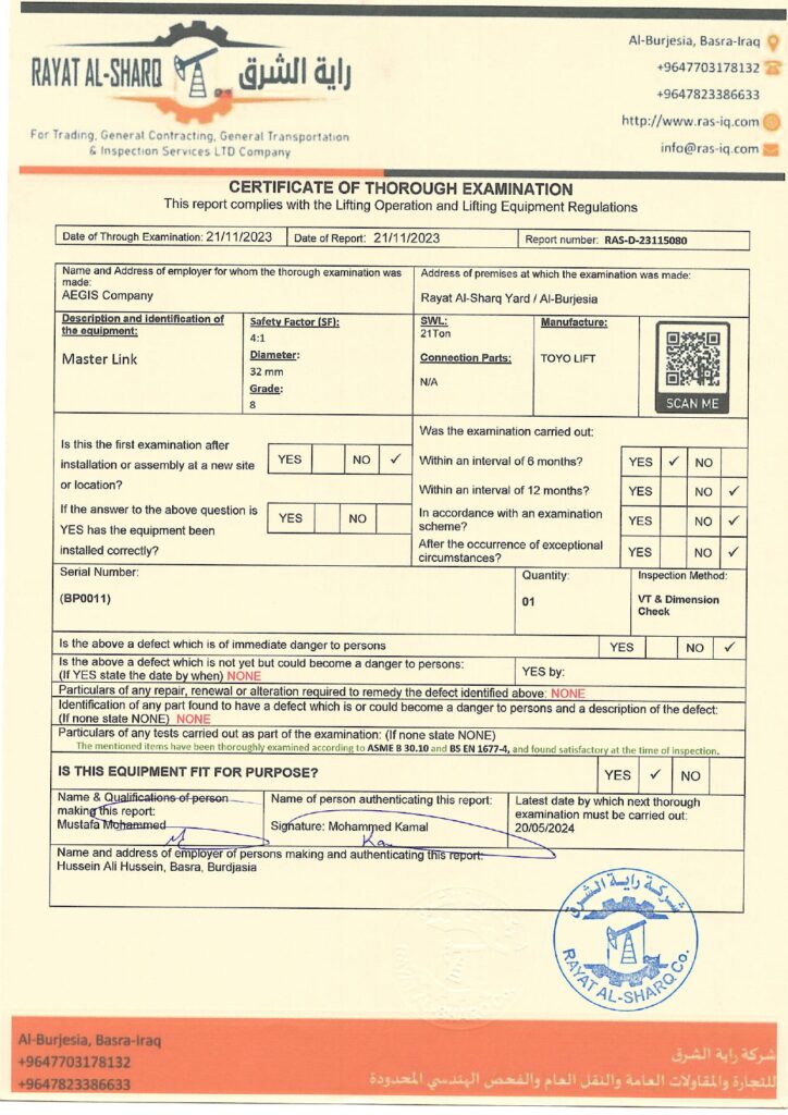 LIFTING INSPECTION