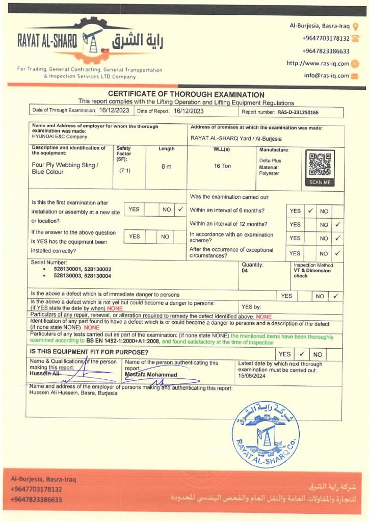 LIFTING INSPECTION