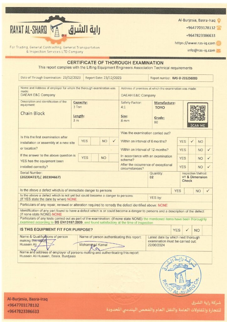 LIFTING INSPECTION