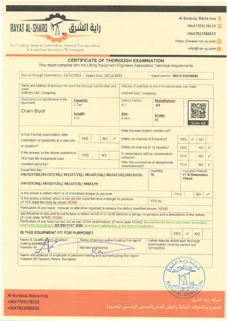 LIFTING INSPECTION