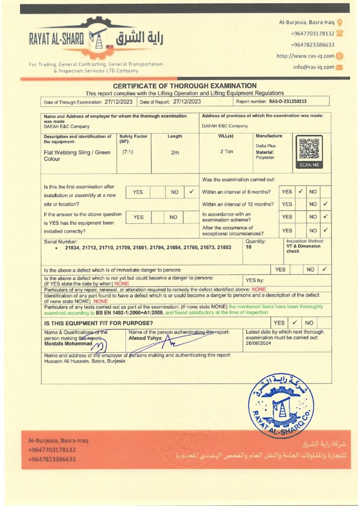 LIFTING INSPECTION