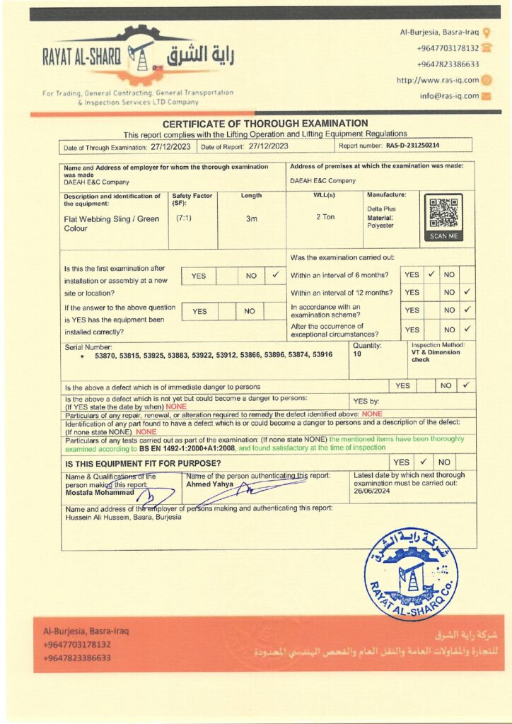 LIFTING INSPECTION