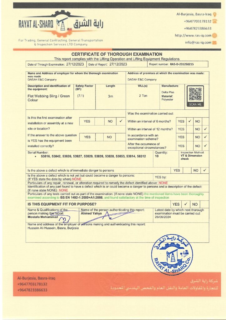 LIFTING INSPECTION