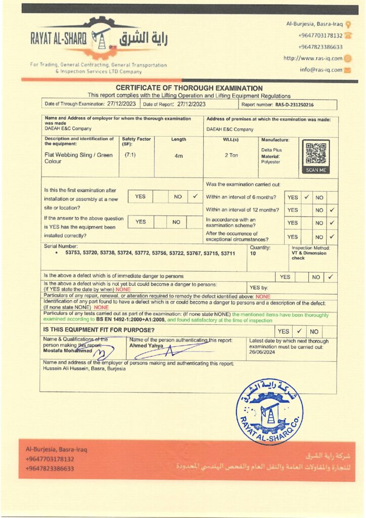 LIFTING INSPECTION