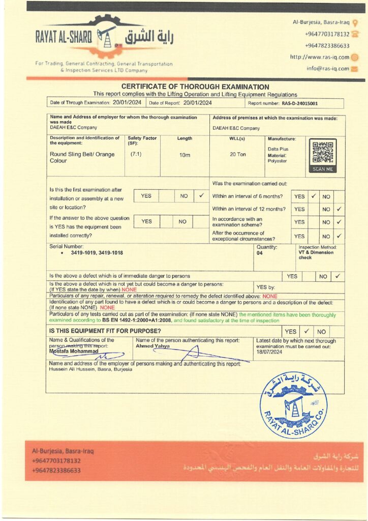 LIFTING INSPECTION
