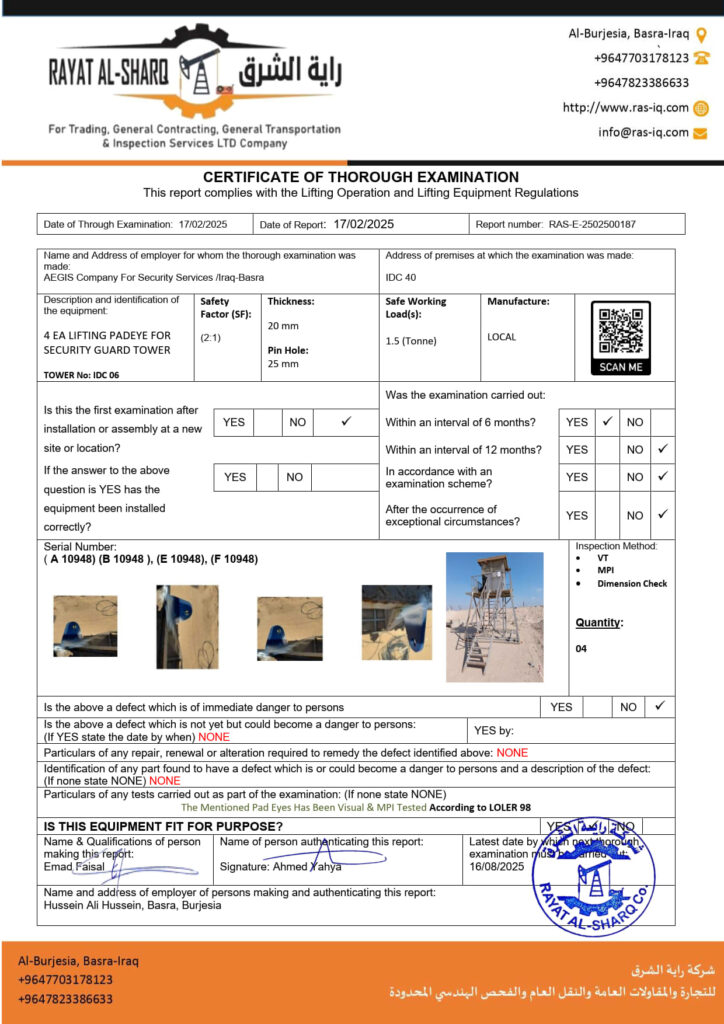 LIFTING INSPECTION