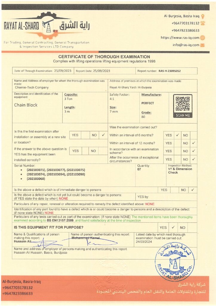 LIFTING INSPECTION