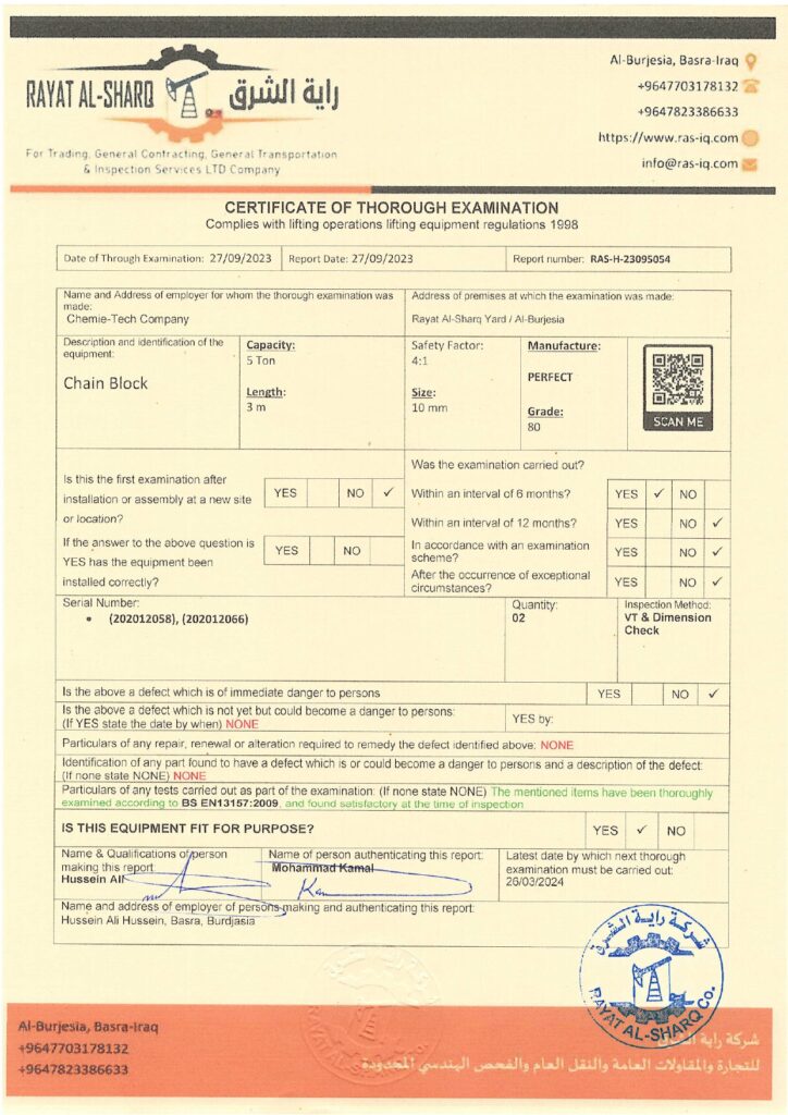 LIFTING INSPECTION