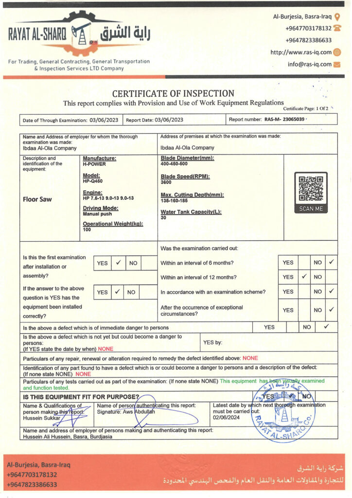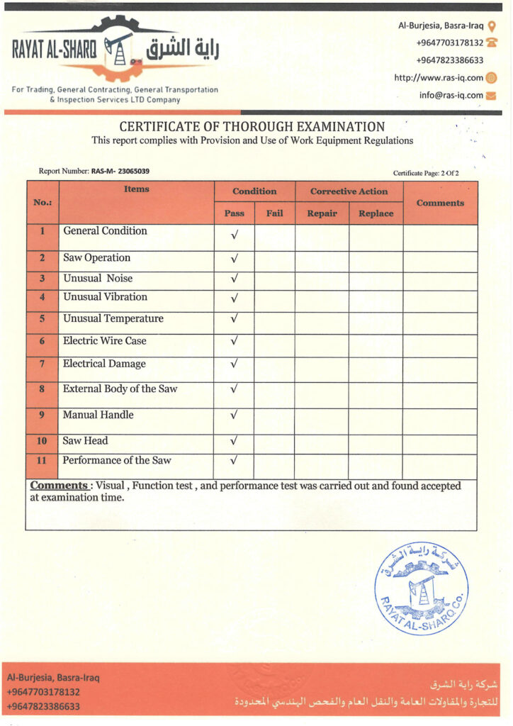 LIFTING INSPECTION