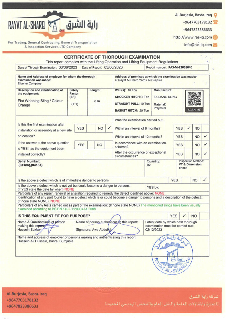 LIFTING INSPECTION