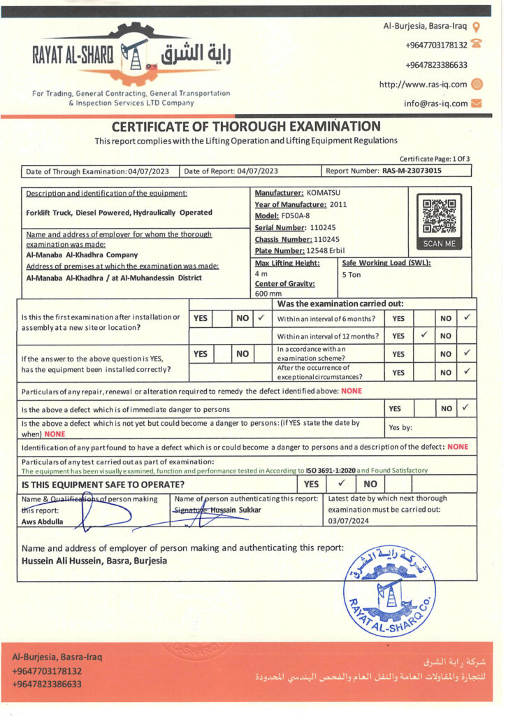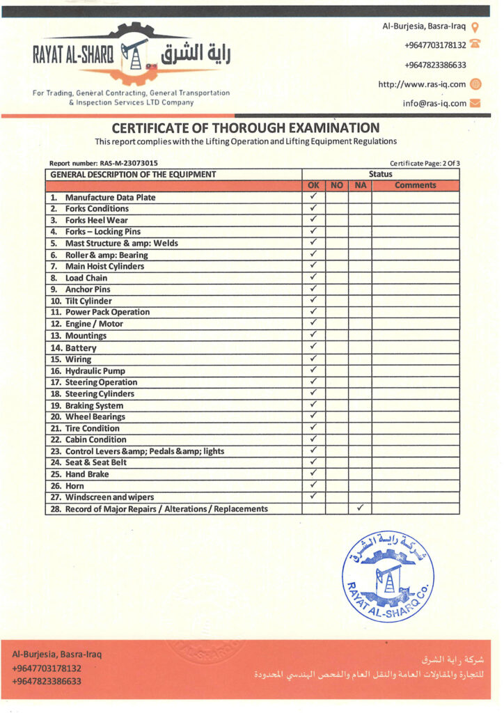 LIFTING INSPECTION