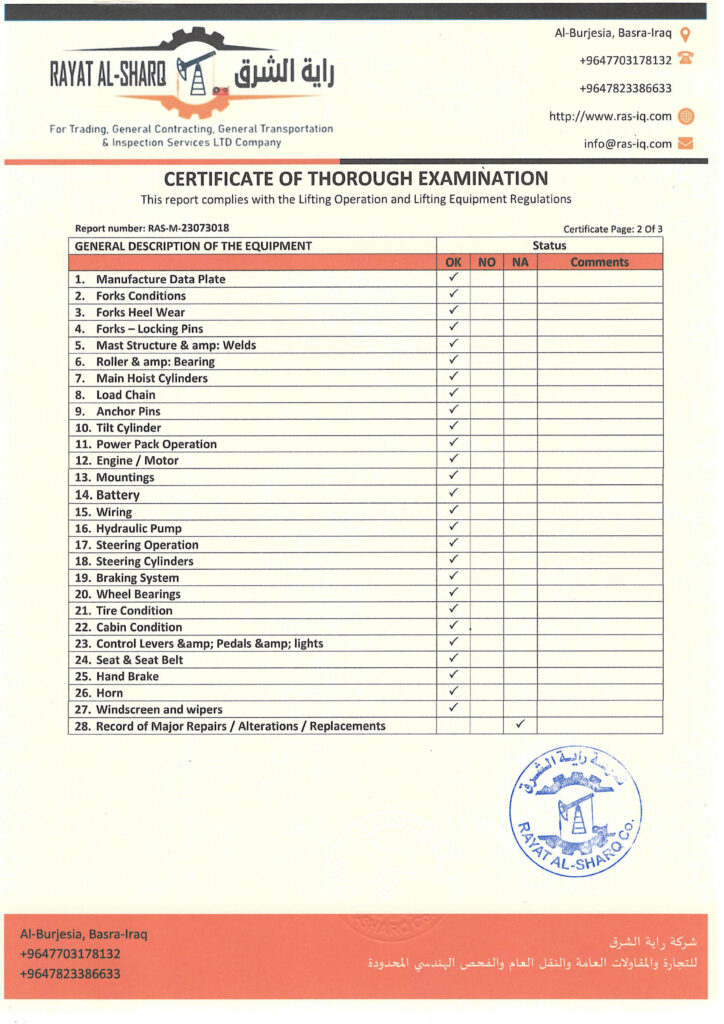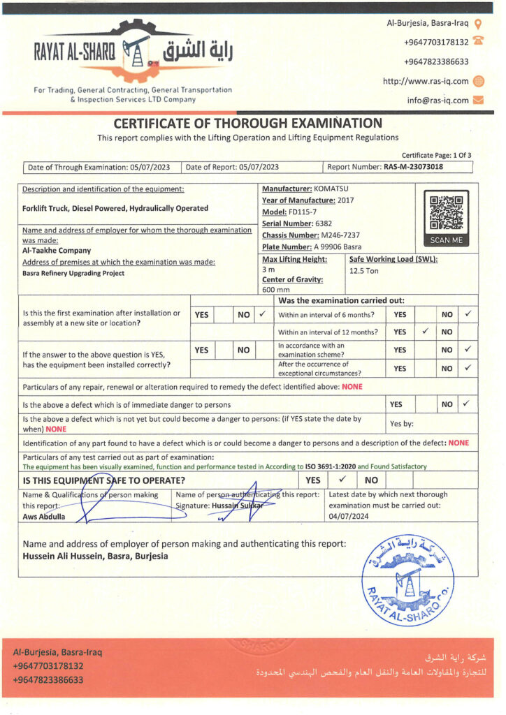LIFTING INSPECTION