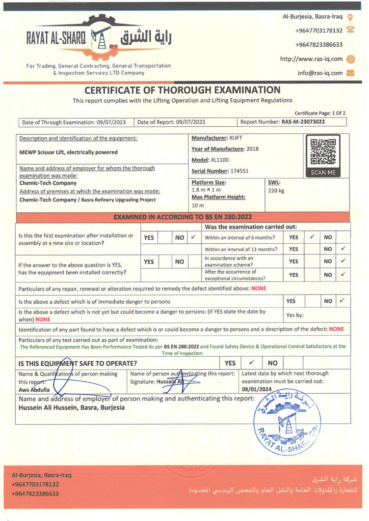 LIFTING INSPECTION