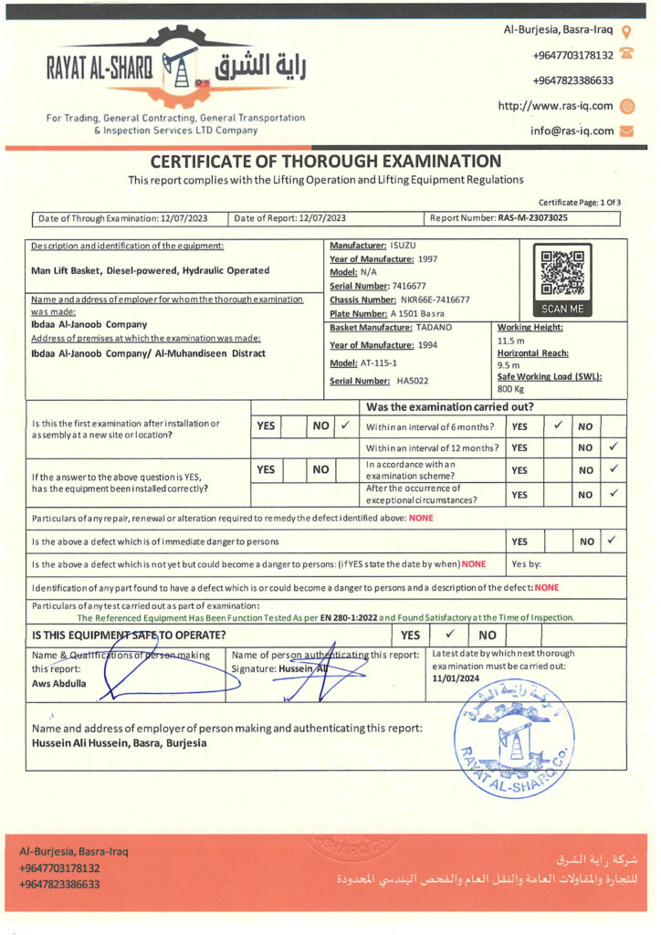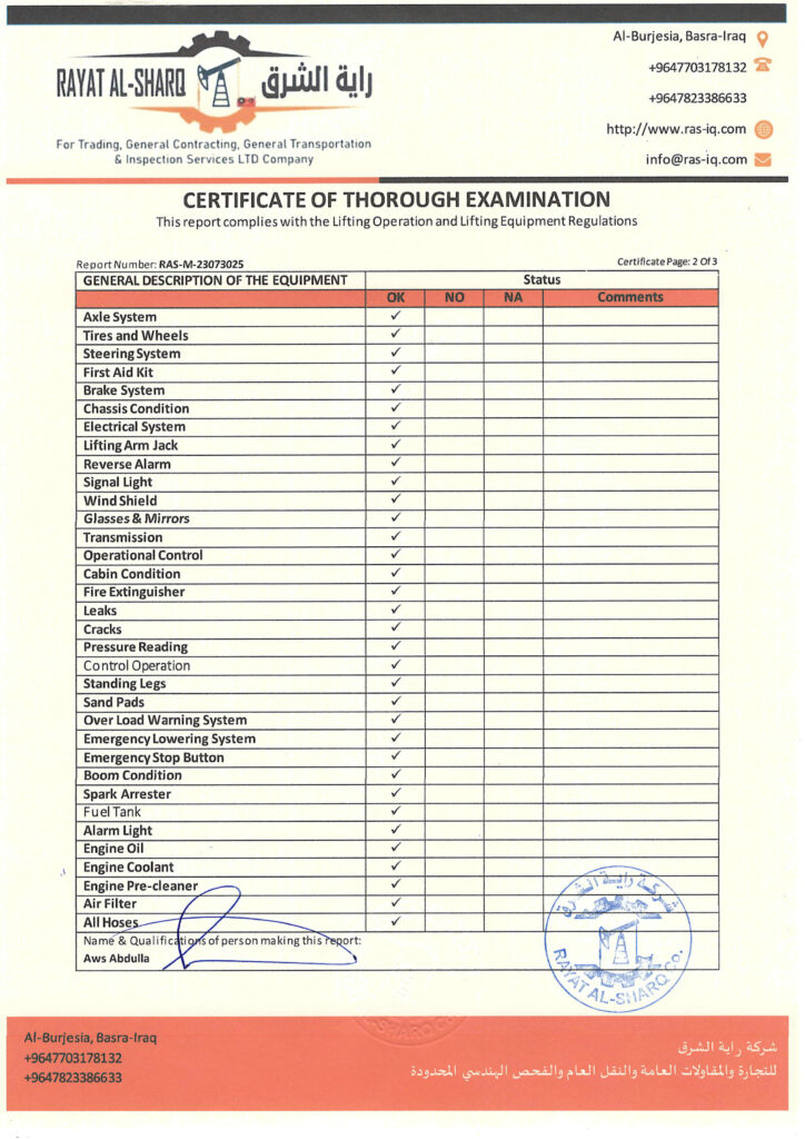 LIFTING INSPECTION