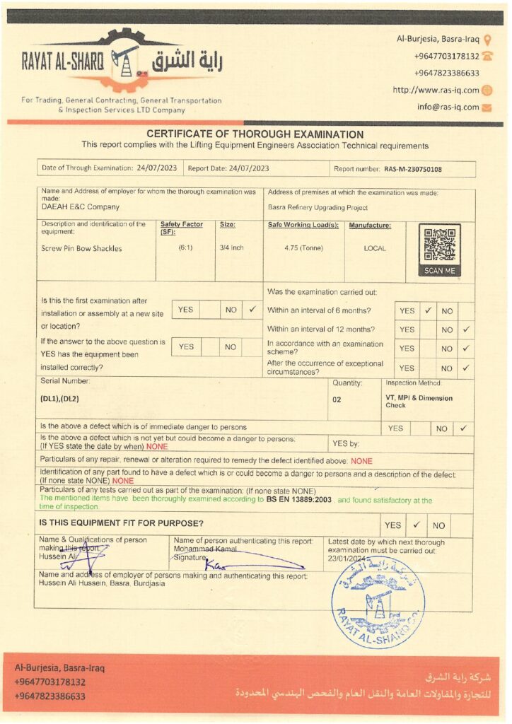 LIFTING INSPECTION