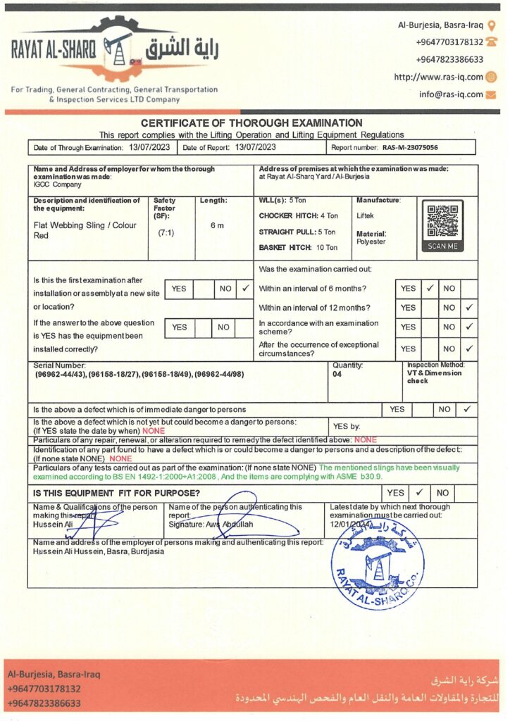 LIFTING INSPECTION