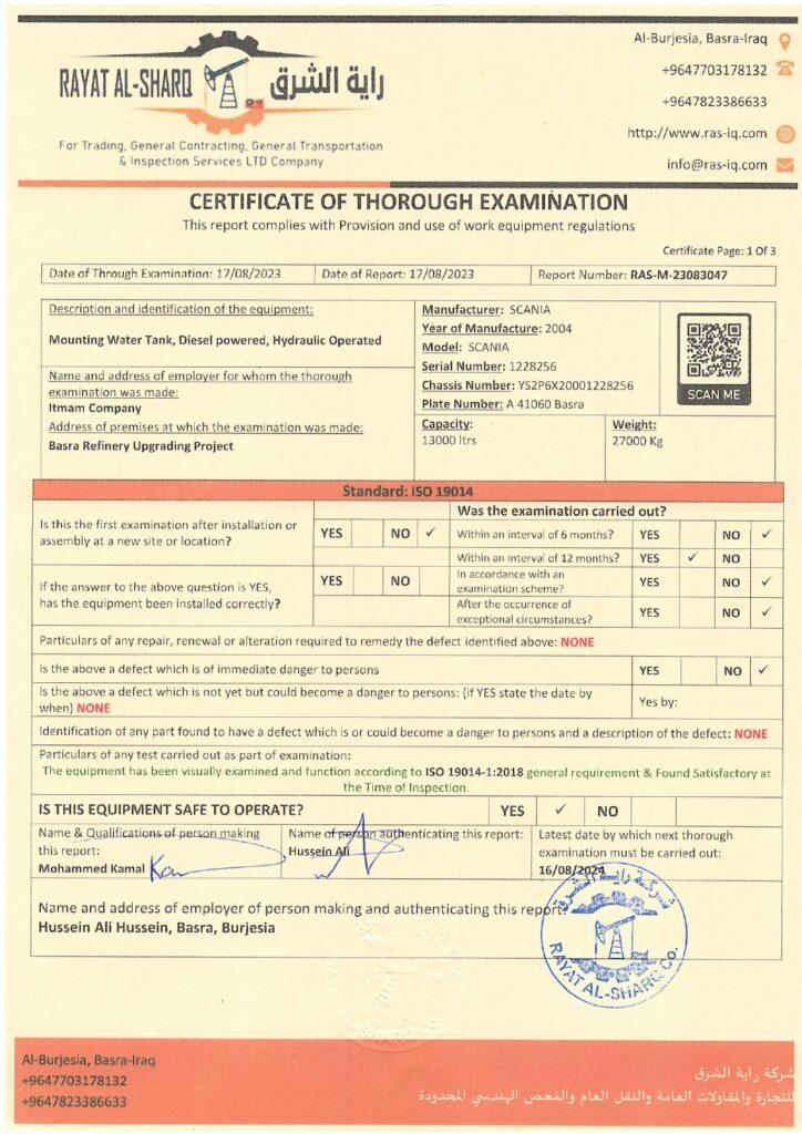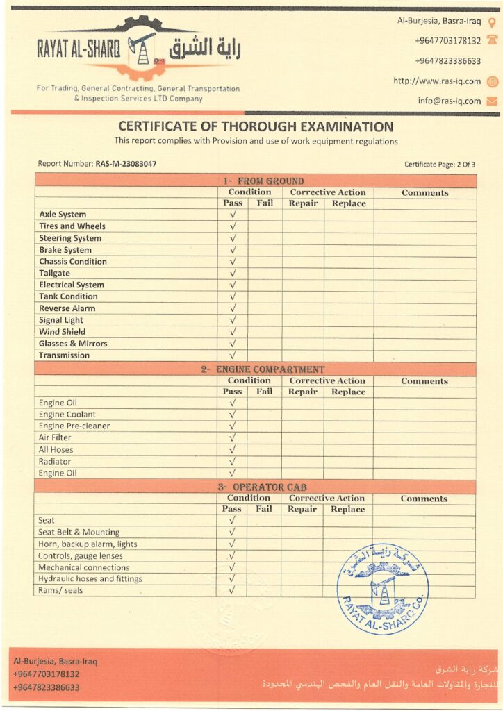 LIFTING INSPECTION